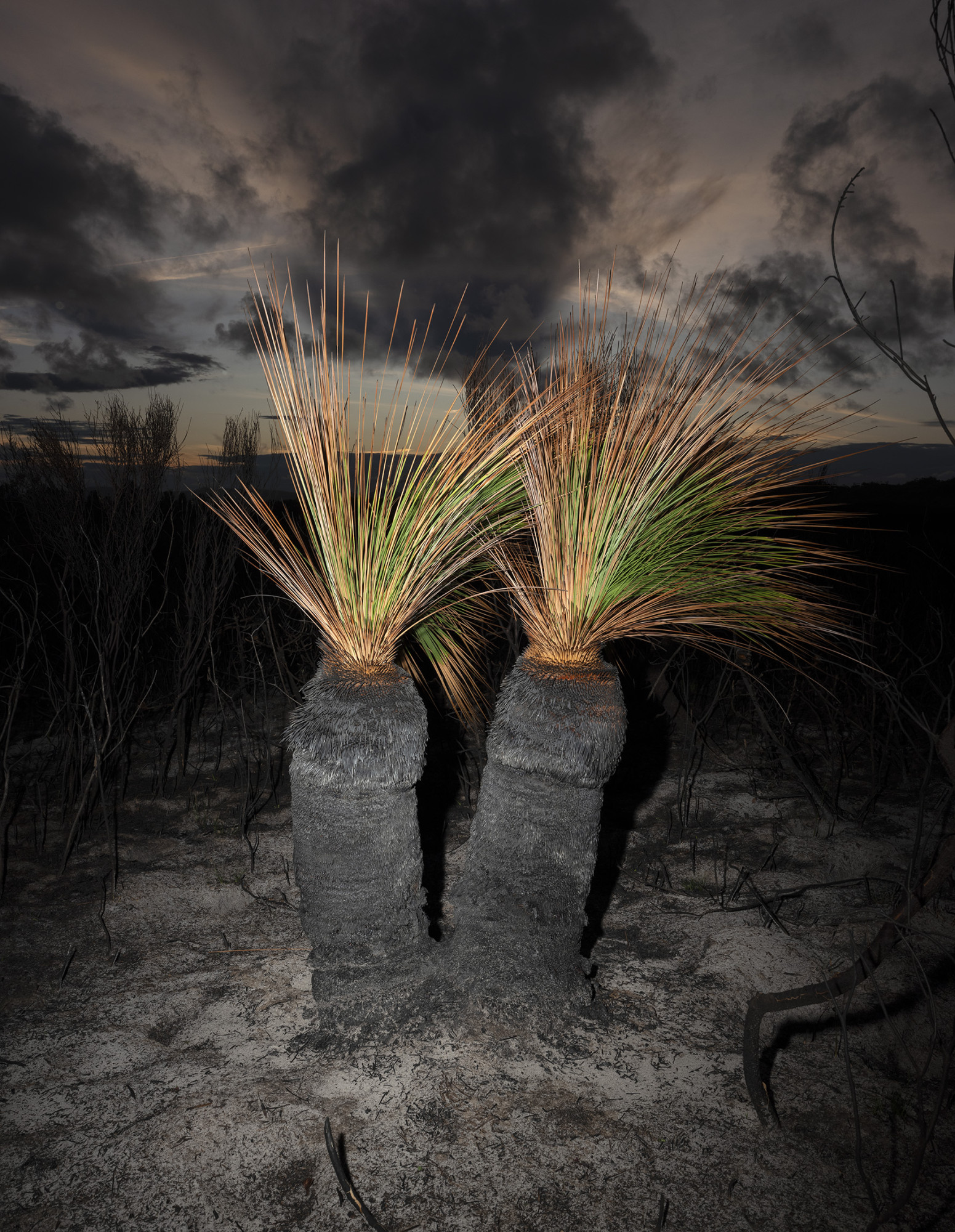 Käsittelen aihettani erilaisin dokumentaarisin menetelmin. Näyttelyssäni on esillä valokuvia tulen ja palamisen ympäristöön jättämistä jäljistä sekä teoksia, joita kutsun tuligrammeiksi. Niissä olen hiillyttänyt kaasupolttimella käänteisiä kuvia puista ja pensaista isoille puulevyille. Olen työskennellyt aiheen parissa vuosina 2023-25 ja kuvannut palojen jälkiä tähän mennessä Rodoksella, Teneriffalla, Australiassa, Portugalissa, Los Angelesissa sekä Etelä-Koreassa.