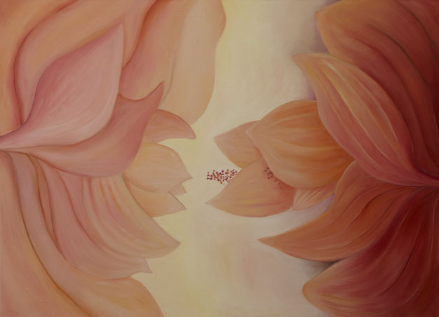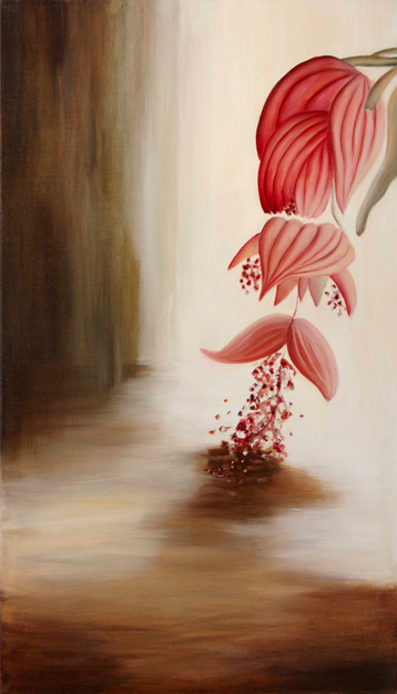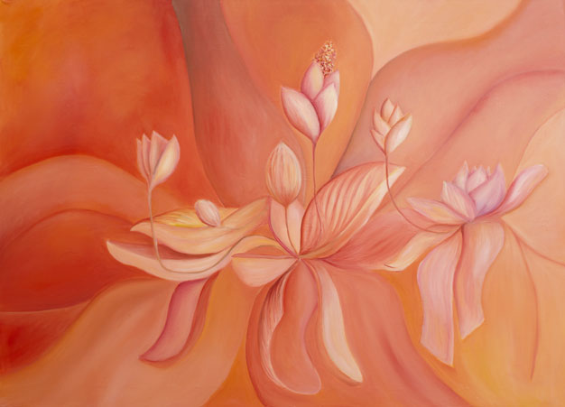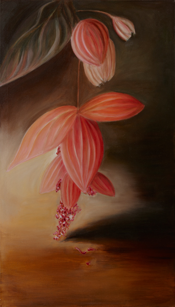Sometimes I take a break during my work and shift to another subject, Medinilla flowers. The fascinating shape of the flower and the way it grows creates an interesting object for observation. At the same time the discussions have continued, but the topic has changed. The colours and moods of both topics are born spontaneously as I paint. I participate in the discussion as I paint and get to have my say.