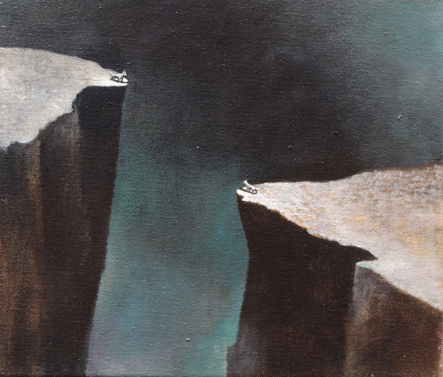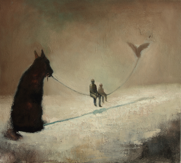 My paintings explore the basic questions of existence. What are we dependent on or led by? How close is the border between the lost and the found? At times life is fragile while at other times like a steel wire that will hold anything. You can never tell how life will carry you or what it will be able to sustain. Uncertainty creates a tension and charge that makes everything valuable.