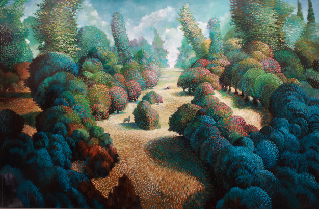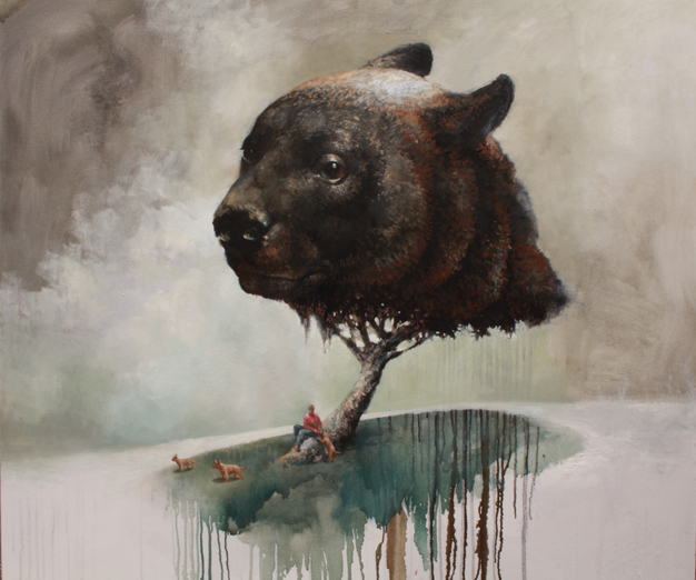 My paintings have a mythological touch. I do not paint any specific myths. Instead, I come up with my own ones. What interests me in myths is the way they tell us about things. They are often irrational and take place in a mythical space and time before us. Animal figures are also essential components of this world. They are friends or messengers, gods or judges.