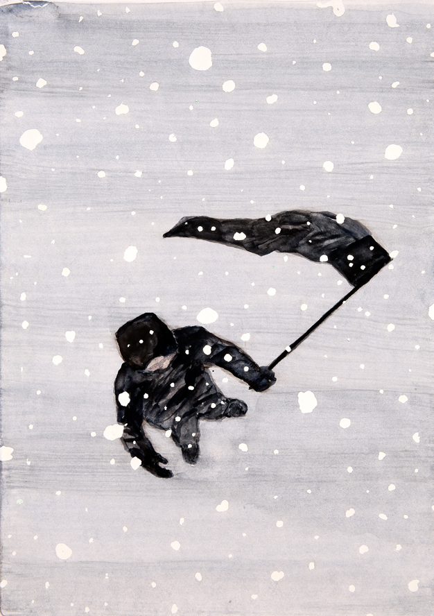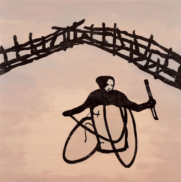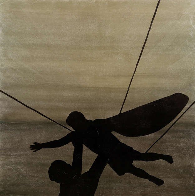 Alongside the wheelchair, the theme of flight, the symbol of a yearning for freedom, is strongly present in Tanttu´s work. But the wound is ever-present: the figure in flight has just one wing and, unlike Icarus, he is not flying towards the sun, never mind too close to it. He is flying through the night; the moon will not scorch his one lone wing.