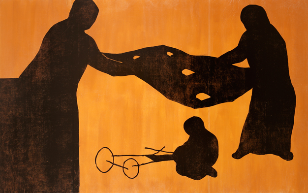 The final hiding places, 2013woodcut and mixed media on mdf-board