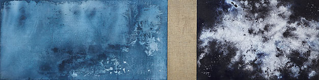 Artist Samu Raatikainen's exhibition features his open-ended interpretations of faraway stardust landscapes and nature's details. His paintings are made of mixed-media panels placed together, and with the resulting paintings form a space where the abstract and the figurative interact. Juxtaposing these images changes the nature and meaning in the individual panels. The panels take on other "personalities" and turn into unrecognisable spaces, which are constructed using the interplay of light and dark colours.