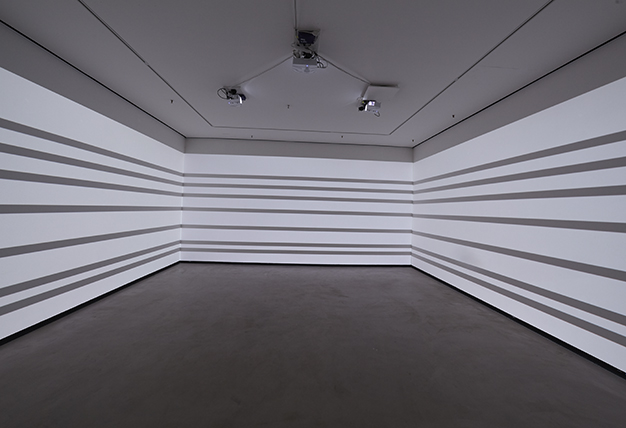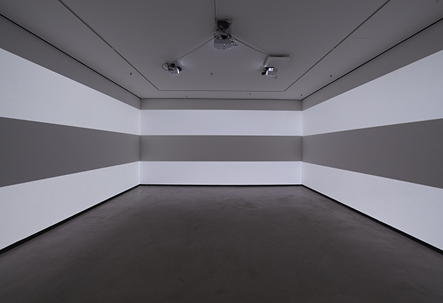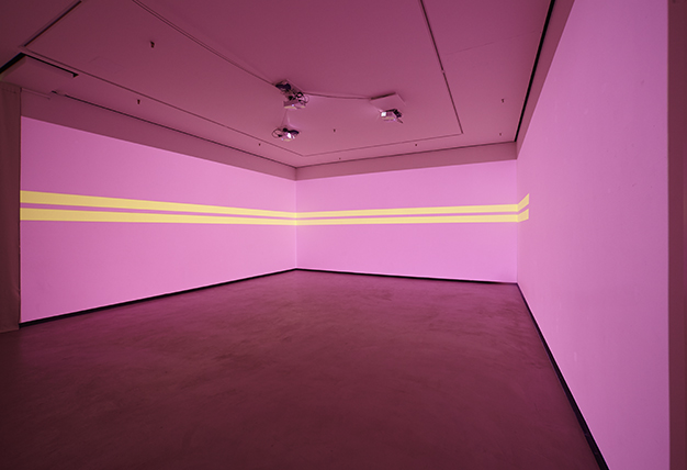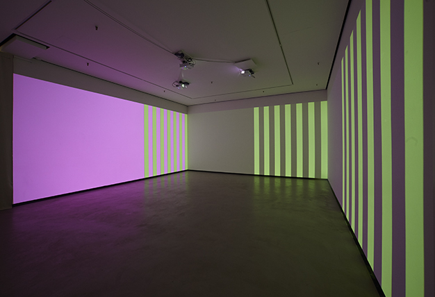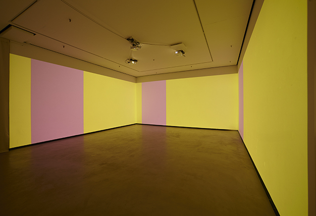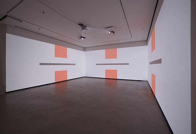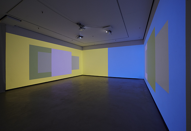 The Colours video installation in my exhibition is reflected on three walls and can be viewed both as a moving image and a painting. In my work, I explored what happens when the element of time is integrated into the examination of an abstract painting by cropping and synchronising images by means of moving image.