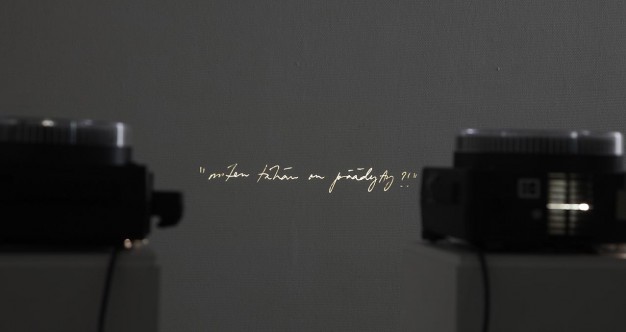 For his Phrases Project slide installation (1993-) Gaál has drawn on a selection of quotes, excerpts from conversations he has overheard and recorded in his sketchbooks over the years. Gaál says "these dialogues I have quoted give you very quickly an idea of the original situation. Like a photograph, the lines create their own version of the reality they depict and leave us with a mere trace of what has passed. My piece is concerned with linguistic expression, the conditions and limitations that govern it. It is as if these spontaneous and trivial utterances offer a solution to the original situation. They stem from the need to think of an relieving explanation or can simply reflect sudden bursts of temper."