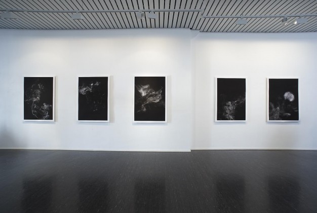 Gaál notes that for his video installation Hey Homer! (Epic Proportions), 2009, he has captured "slowly moving smoke formations assuming a life of their own, their proportions becoming increasingly blurred. The images have been captured using a high-speed camera that allows one second of footage to be stretched over five minutes. The result is almost like looking into a time microscope where the smoke creates a neverending variety of shapes and formations. The title is a reference, not just to Homer, but also to storytelling. The motif in itself is not significant, what is important is how it acts as a projection surface for the viewer." The exhibition also includes photomontages.