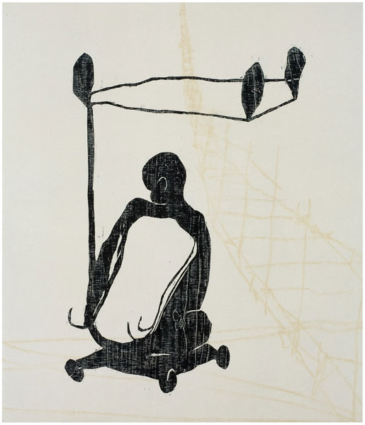 The waiting ones, 2007woodcut and mixed media on MDF-board