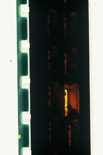 Even after the laboratory, the image is still far from final. It is in motion. The loop of film runs day after day in the gallery, becoming scratched and damaged throughout the exhibition.