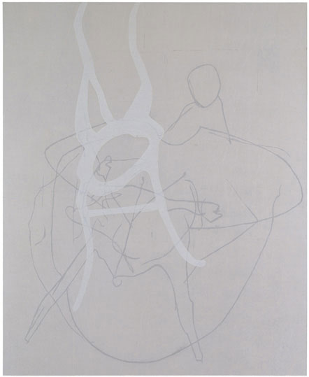 Antti Tanttu´s figurative language of recent years has been based on bipolar perception. One element of the image is the seeking, probing lines that create a wire model for being; another are monochrome shapes that come between the lines and viewer like a cat sitting on a newspaper.