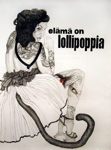| I started my exhibition project by contacting people in the public eye and telling them about my idea of using them as examples to study the nature of celebrity. We talked, I took pictures of them, they modelled for me and I reviewed the material produced about them in the media. They gave me permission to use artistic licence when depicting them in my work. All of this enabled me to bring out in my work exactly those points that I wished to make. My works examine how these people see themselves, how the public eye sees them and how I see them. The final work incorporates all three levels of perception. It remains up to the viewer to decide which parts of the work are inherent to the model´s own identity and personality, which parts have been created by fame and which demonstrate the artist´s views. I want to raise the question of truthfulness v. falsehood. In one of the drawings, I have portrayed myself as the embodiment of the female form as represented by the ideals of modern-day media and fashion catalogues. Henna Pohjola The name of the exhibition, 20 DAYS, is a strong indicator of the statement Henna Pohjola has wished to make. She uses familiar faces to describe the effect of the media on human identity. A mental association with the tabloid press is inevitable. This exhibition only remains open for 20 days - likewise, in the media, news only remain news for a fleeting moment, seldom even for those 20 days. Tragedy, revolution, natural disaster and human suffering impact only briefly on us, for as quickly as we change the channel, equally quickly we lose all interest in what we encountered only moments ago - not to mention the fates of individuals. Nonetheless, if the media are responsible for giving meaning to our lives, what can we control any longer? The flood of images has a strong impact on self-image. When behaviour, appearance and the difference between right and wrong are all dictated from outside, do we have any true choice as to who we wish to be? The imaginary world allows for a wide range of roles and selves, but does it leave any room for humanity and personality? Can we choose the right self from the many alternatives open to us? Can I still recognise myself? Even our emotional landscape is affected by what we see. Our capacity to feel is constricted and diminished as we try to live not according to our own emotions but according to internalised role models. Thus the media invade our social relationships, which the media tell us can be enlivened with casual sex and carefree break-ups. Still, it´s difficult to embark on yet another adventure when your heart has been torn to pieces. Disappointment, weariness or loneliness are given no media play unless, of course, something spectacular (burn-out - a fashionable state?) and scandalous is involved. Too many rounds on the roller coaster of experiences and emotions can screw you up. In reality, life has more hues, from one end of the colour spectrum to the other. Not only opposites - black and white, fun and boring, right and wrong, good and evil - but everything that falls in between. Hanna Tervanotko theologian | |