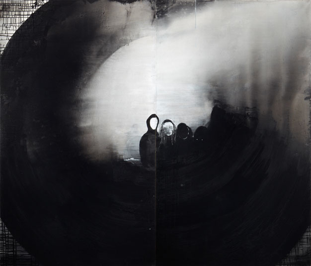 Heijastus sarjasta Tiheän pimeän läpi, 2011guassi ja pigmentti kankaalle