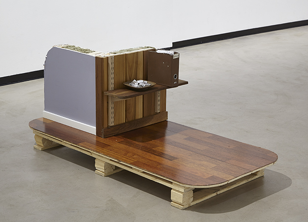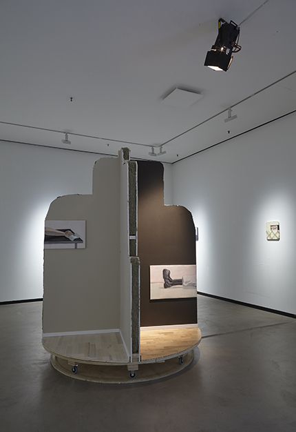 Gallerian lattiatilan valtaavat fiktiivisestä huonetilasta irti leikatut kappaleet, joissa lattia- ja seinäpintojen alle piilotettujen kerrosten välitilat - kuin ihmisen mielen tiedostamattomat kerrokset - on paljastettu. Teatterinomaiset kulissit pitävät sisällään mahdollisuuksia erilaisille tapahtumille, mutta epätäydellisyydessään myös rajoitteita: ne ovat kuin menetettyjen mahdollisuuksien kuvia.