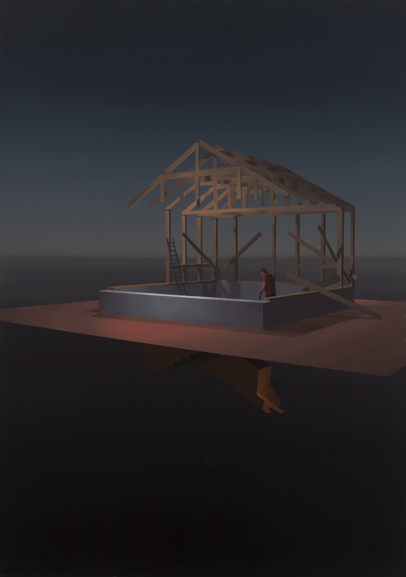 Aiemmin olen käyttänyt maalausten lähtökohtana valokuvia paperista tehdyistä pienoismalleista. Uusissa teoksissani lähtökohtina ovat ottamani valokuvat ja tietokoneella tehdyt 3d-mallinnukset. 3d-mallintaminen auttoi minua näkökulman muutoksessa. Paperiset pienoismallit olivat pienikokoisia elokuvalavasteita, kun taas digitaaliset mallinnokset kuljettavat maalaukset videopelien maailmaan.
