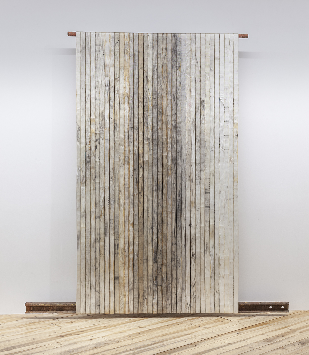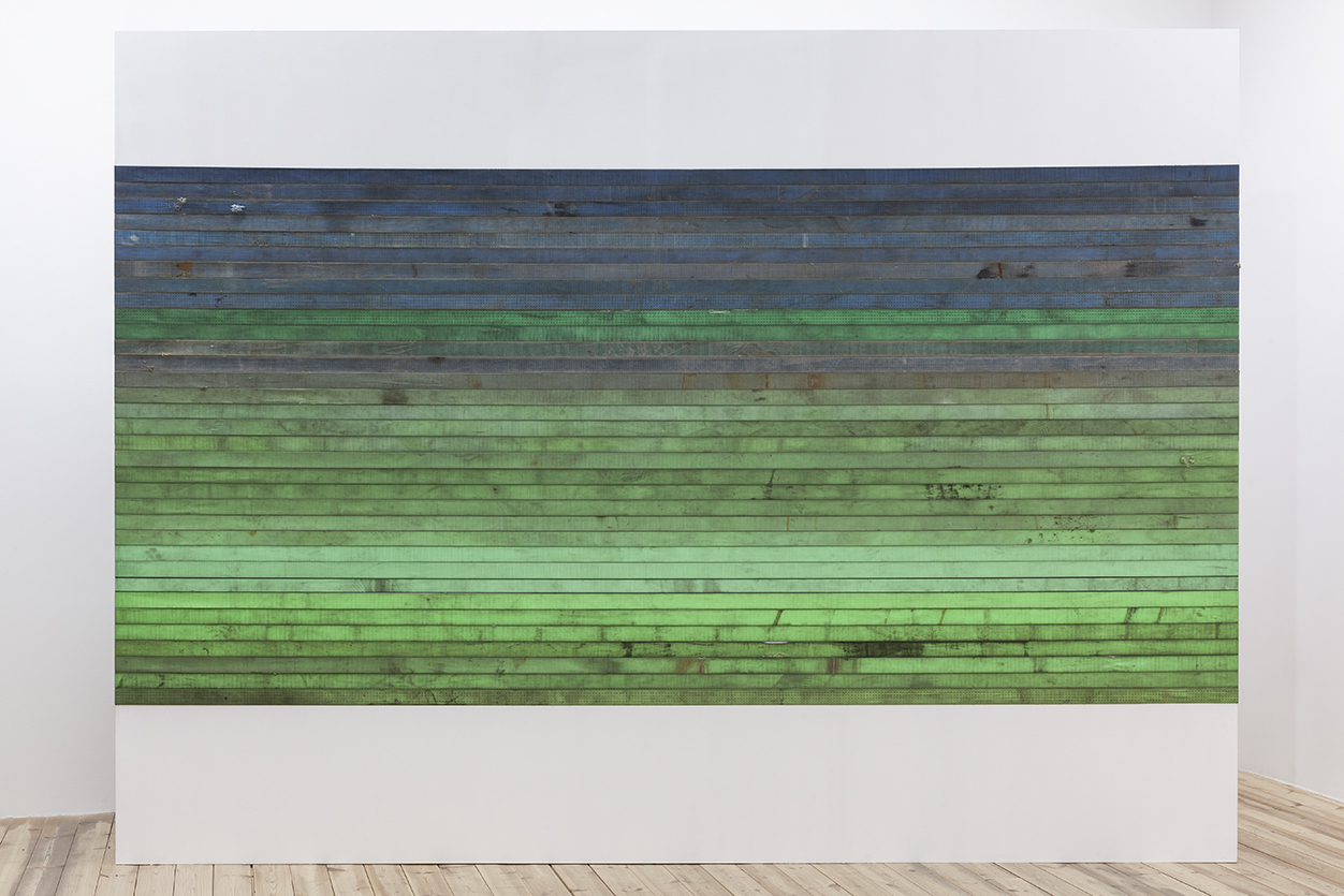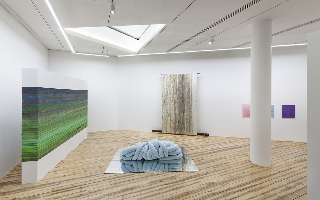 lähenevät teokset herättävät maisemallisia mielikuvia, mutta muistuttavat materiaalinsa
