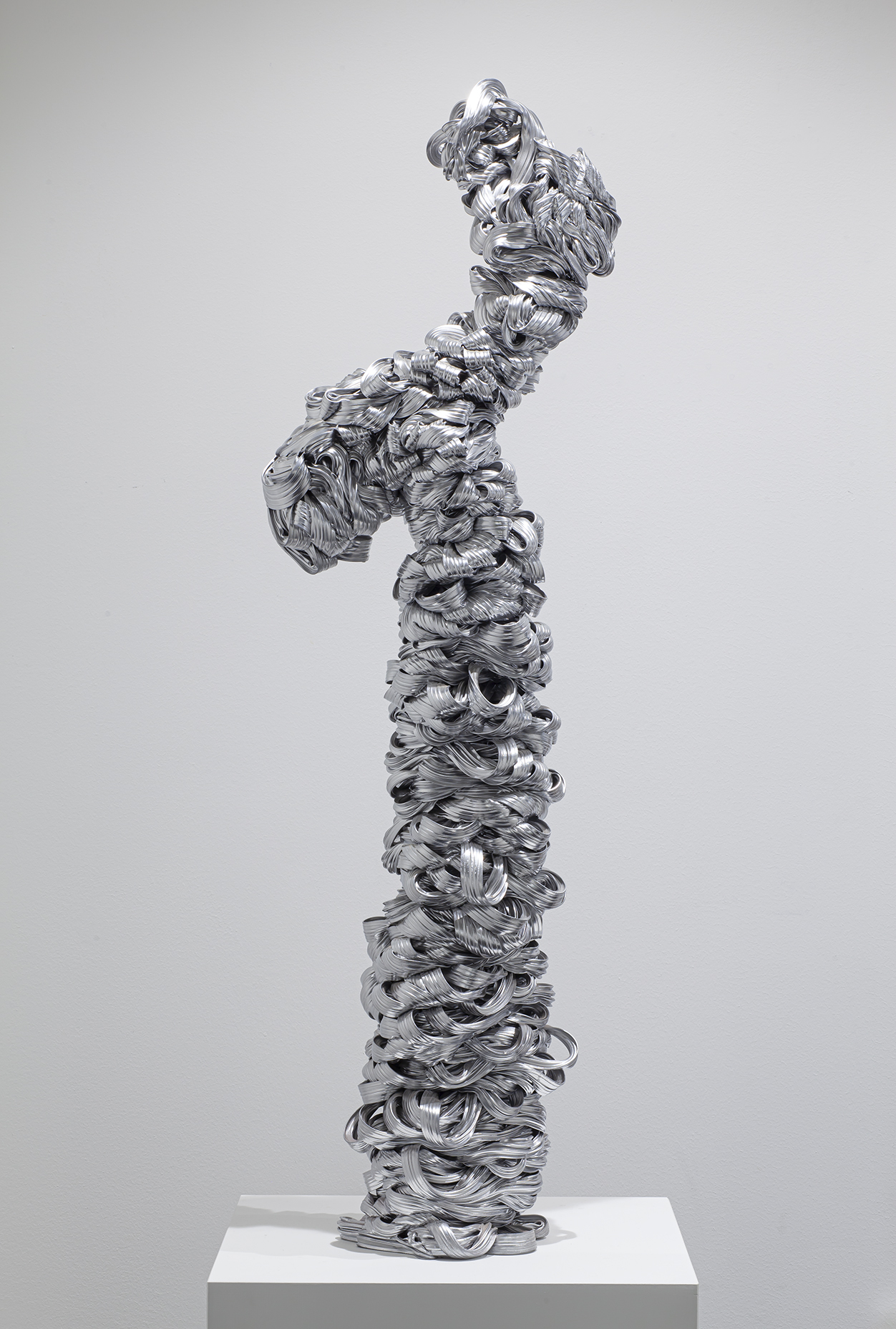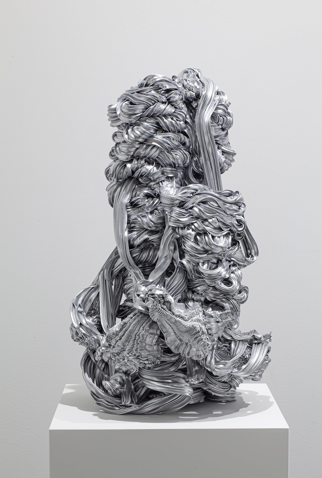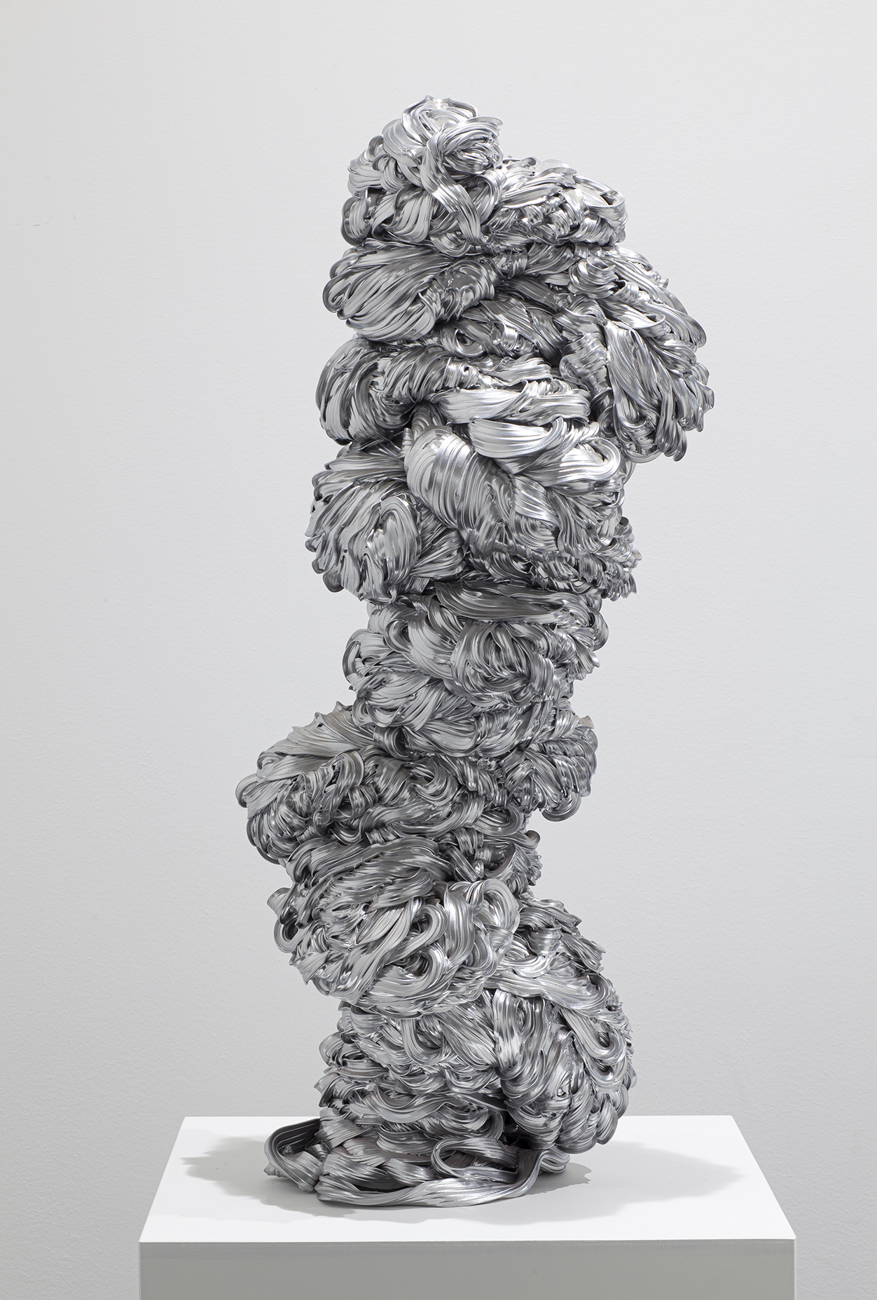 Lana Haga (s.1986) käyttää veistoksissaan teollisuuden ylijäämämateriaaleja, muovia ja tekstiilejä ottaen näin osaltaan kantaa luontoa saastuttavaan ylituotantoon ja ekologisen romahduksen uhkaan.