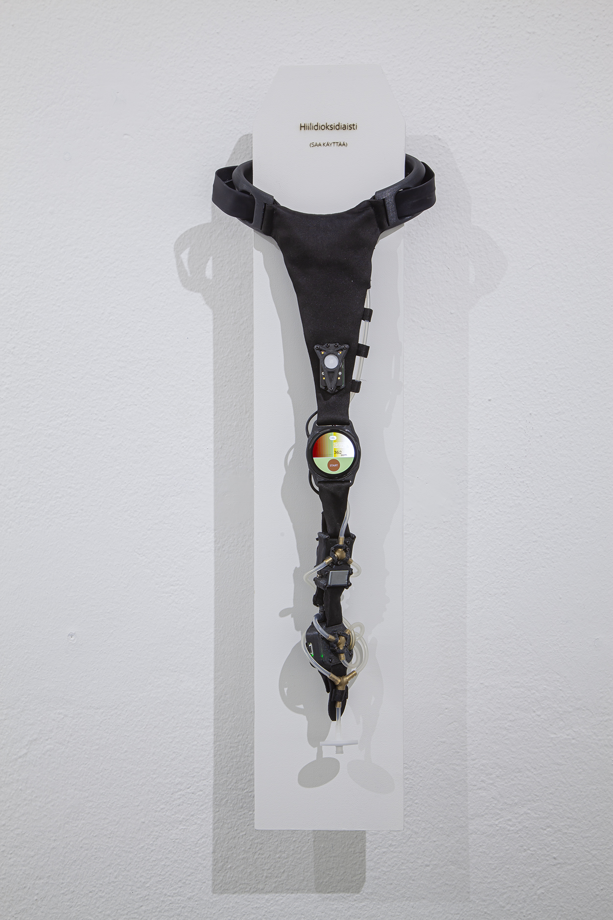 eivät sitä havaitse. Vasantolan teos mittaa hiilidioksidin määrää ilmassa ja