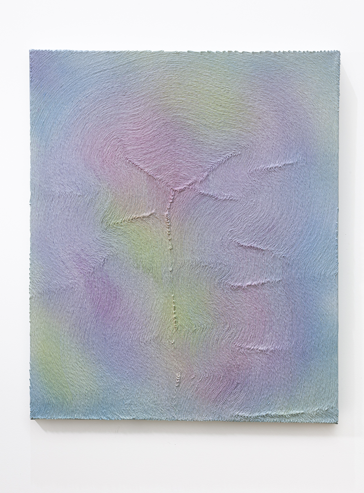Superposition -sarjan teoksissa Haga on työstänyt käsin puuvillalankaa meditatiivisesti erilaisiksi kuvioiksi maalauskankaan päälle. Kuviot ovat syntyneet niin langan oman luonteen ja käyttäytymisen kuin taiteilijan intuitiivisen kädenjäljen kautta. Lisäksi Haga on käyttänyt hienovaraisia ohennetun öljyvärin tai akryylimusteen väriliukuja elävöittääkseen lankakuviosta koostuvan pinnan. Monokromaattisilta näyttävät pinnat muuttuvat lähemmässä tarkastelussa ikään kuin luontoa ja maailmankaikkeutta heijasteleviksi rakenteiksi. Superposition -sarjan teosten nimet Haga on ottanut Rainer Maria Rilken kirjasta Letters to a Young Poet (1903-1908), joka Hagan mukaan vangitsee niitä eksistentiaalisia tiloja, jotka ovat taiteellisen luomisprosessin taustalla. Näyttelytilassa tullaan kuulemaan myös Rilken runoihin perustuva ääniteos.